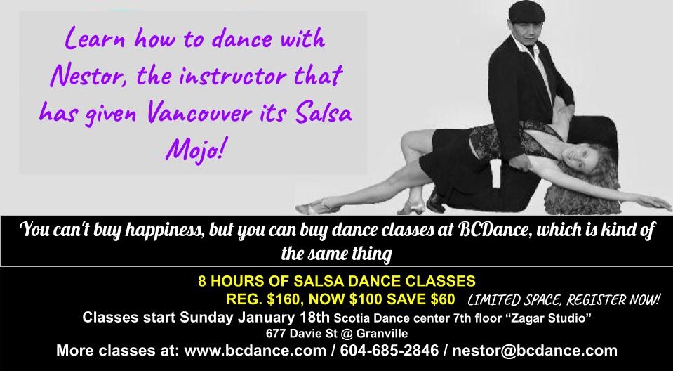 Where: Scotia Dance Center. “Zagar Studio” 677 Davie St, 7th Floor, Vancouver